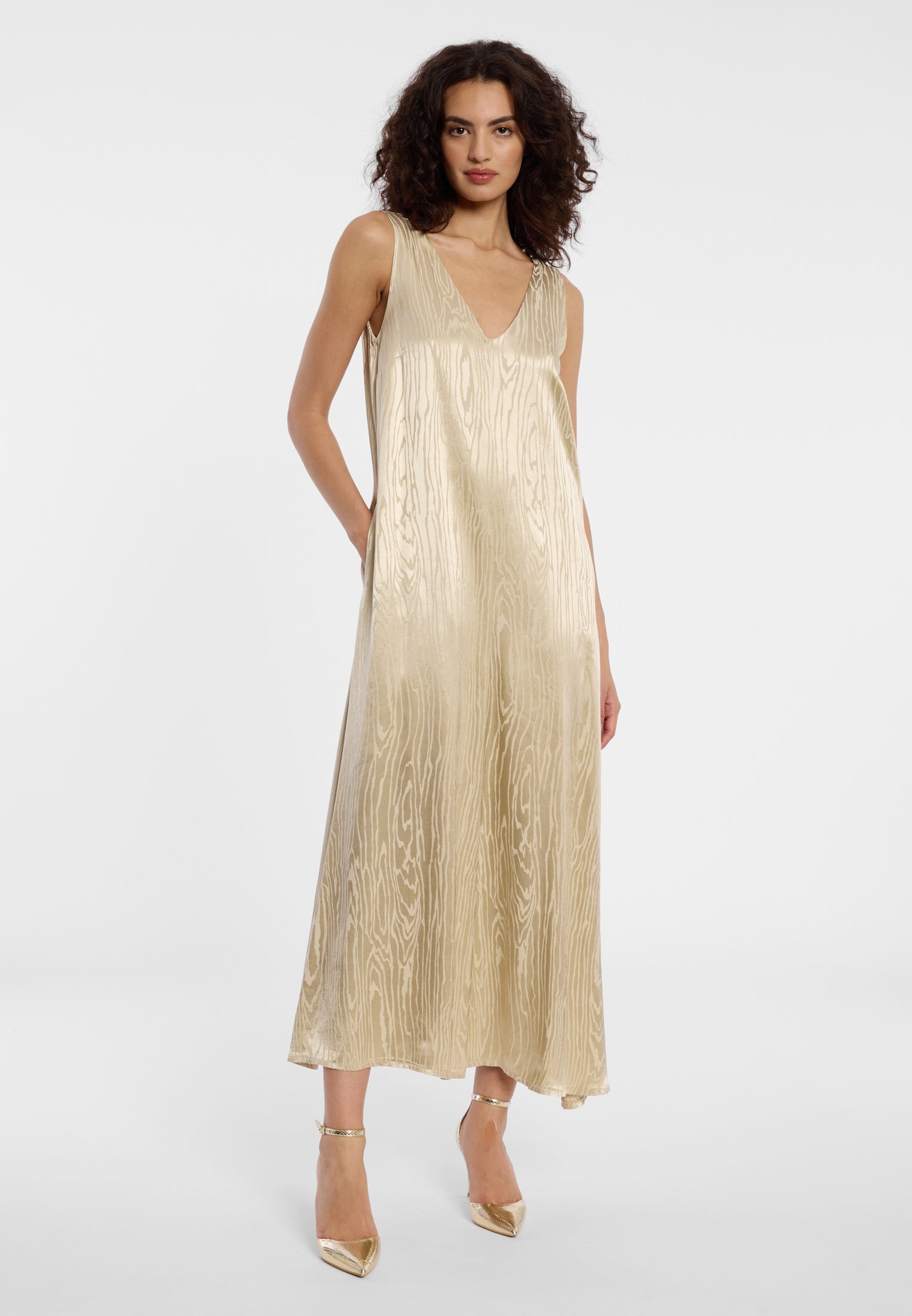 Beige Kleider mit Metallic-Details
