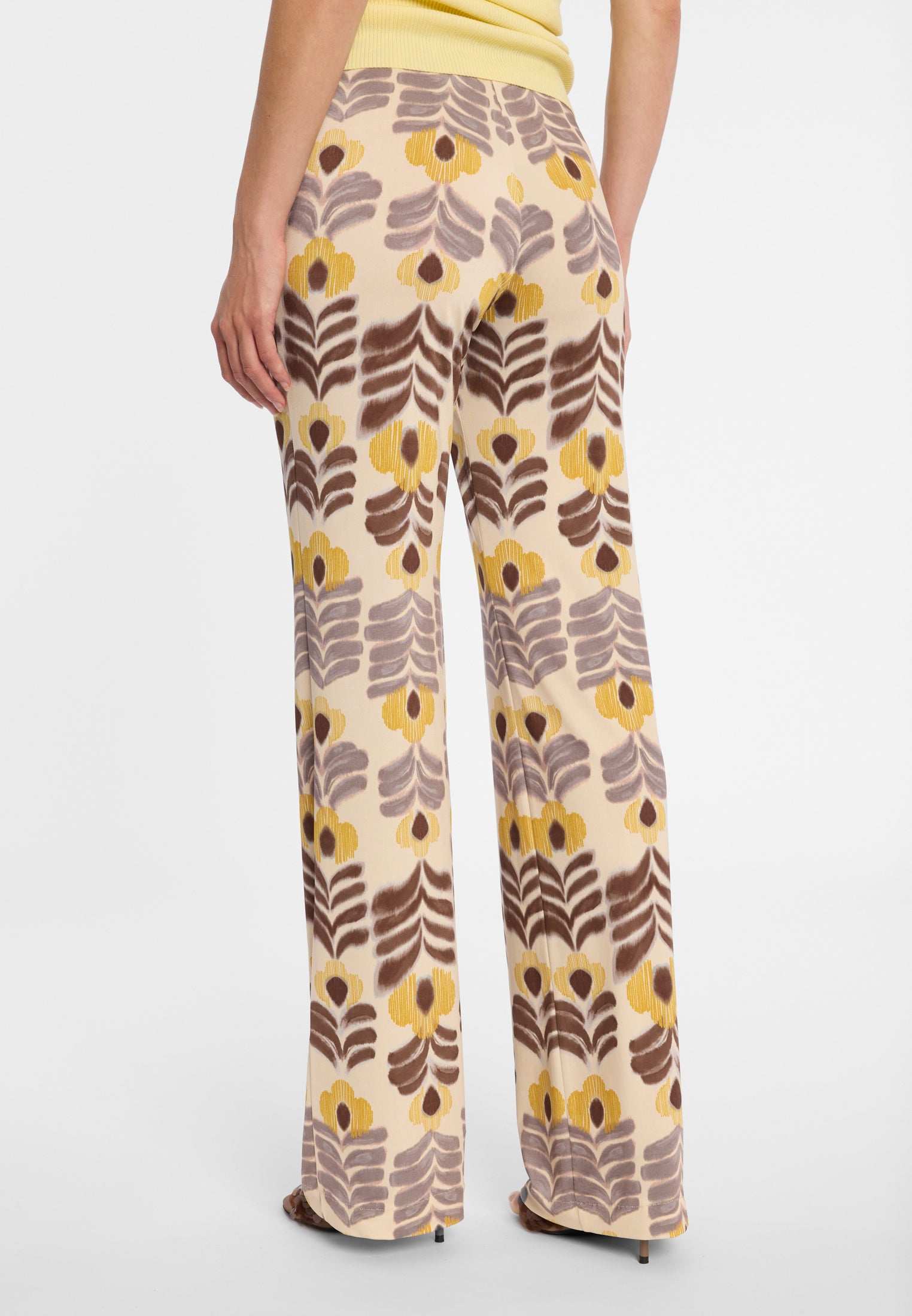 The history of women’s trousers is closely linked to female emancipation. Until the late 1960s, it was still considered improper for women to wear anything other than dresses or skirts. Just a few years later, women’s trousers became a worldwide trend. Cuts and fabrics varied by decade: wide flares defined the 70s, skin-tight leggings the 80s, casual jeans the 90s, and baggy pants the 2000s. Today, when almost anything goes in fashion, many styles from past decades are celebrating a comeback and blending with modern influences. Whether wide-leg trousers, cropped 7/8 styles, straight cuts or flared designs – the variety is endless. And just one pair opens up countless ways to mix and match with tops and shoes. Discover colourful, elegant, or wide-leg Ana Alcazar trousers that prove just how multifaceted fashion can be.