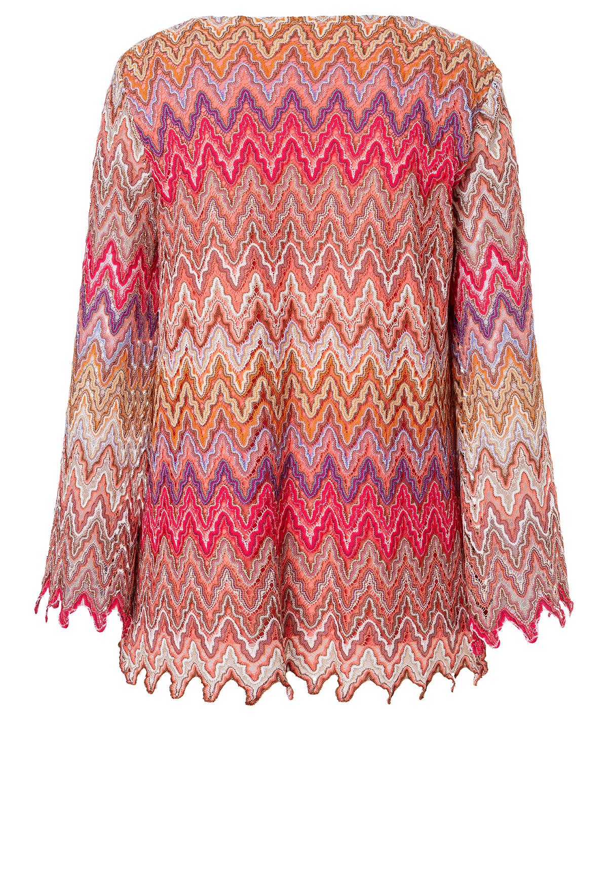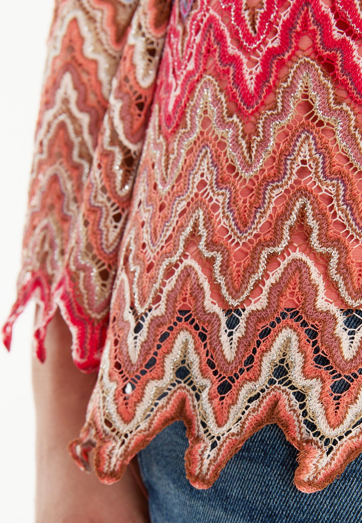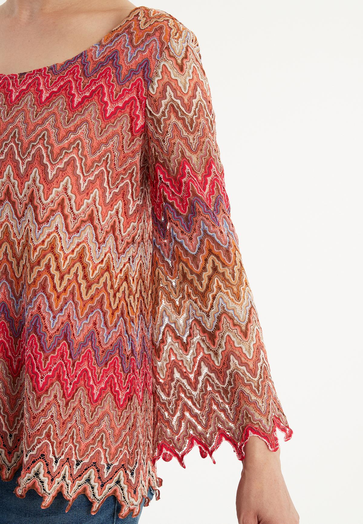 The Zecosa long-sleeved top in summer knit in bold red, brown and purple tones offers a combination of comfort and style. The casual cut and wide round neckline ensure a relaxed fit, while the ajour zigzag pattern gives the top a dynamic touch. Perfect as a two-piece set with our matching Zaybea trousers for an elegant look or casually combined with jeans for everyday wear. Wear with light sneakers or boots and a trendy shoulder bag.