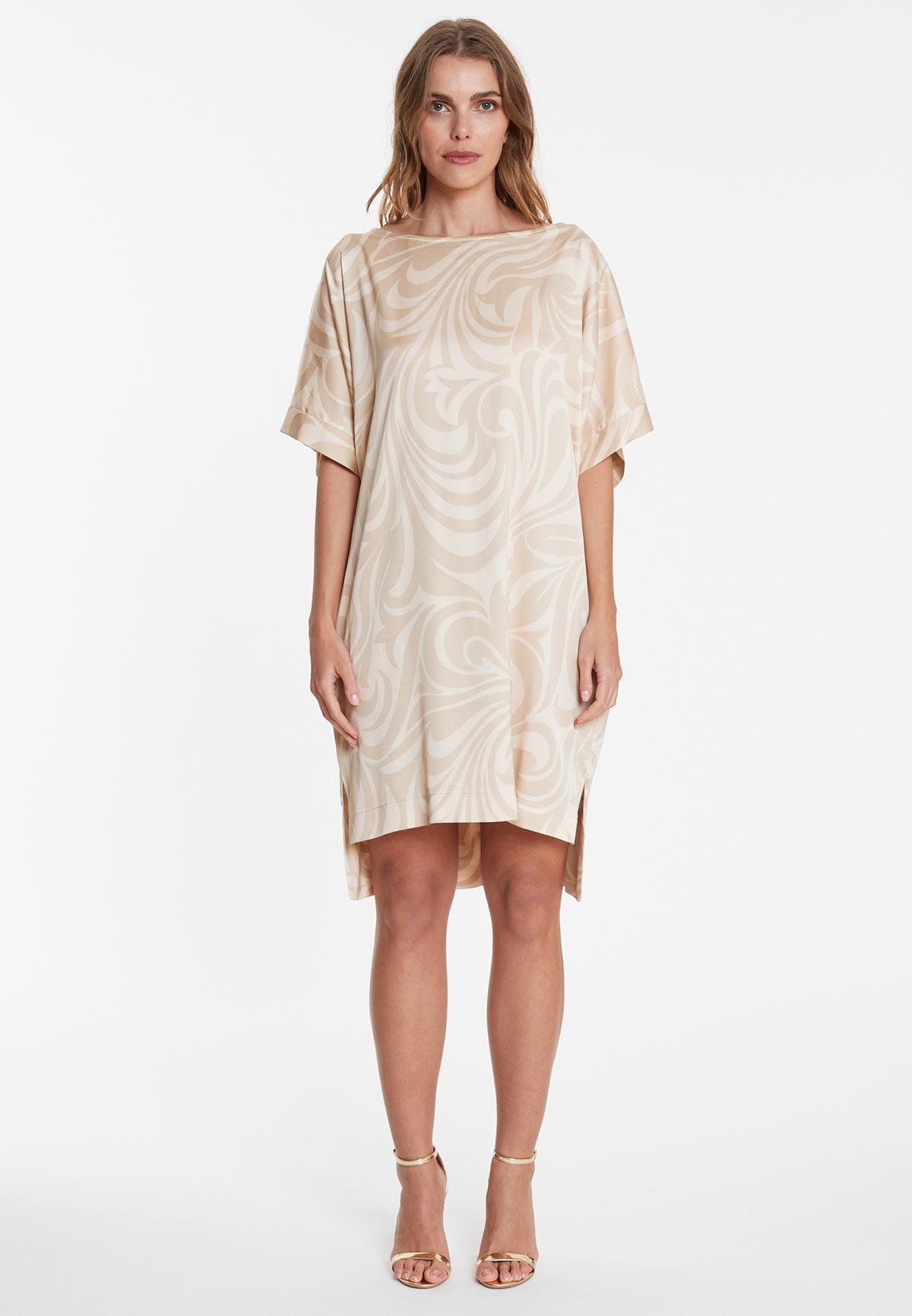 Ontdek jurken voor het lentetype die warmte en frisheid uitstralen. Zacht koraal, lichtgroen en champagne met goudaccenten versterken je natuurlijke uitstraling ohne harde contrasten. Bij Ana Alcazar combineren onze jurken voor lentetypes verfijnde florale motieven en subtiele patronen die lichte, warme huidtypes perfect completeren.