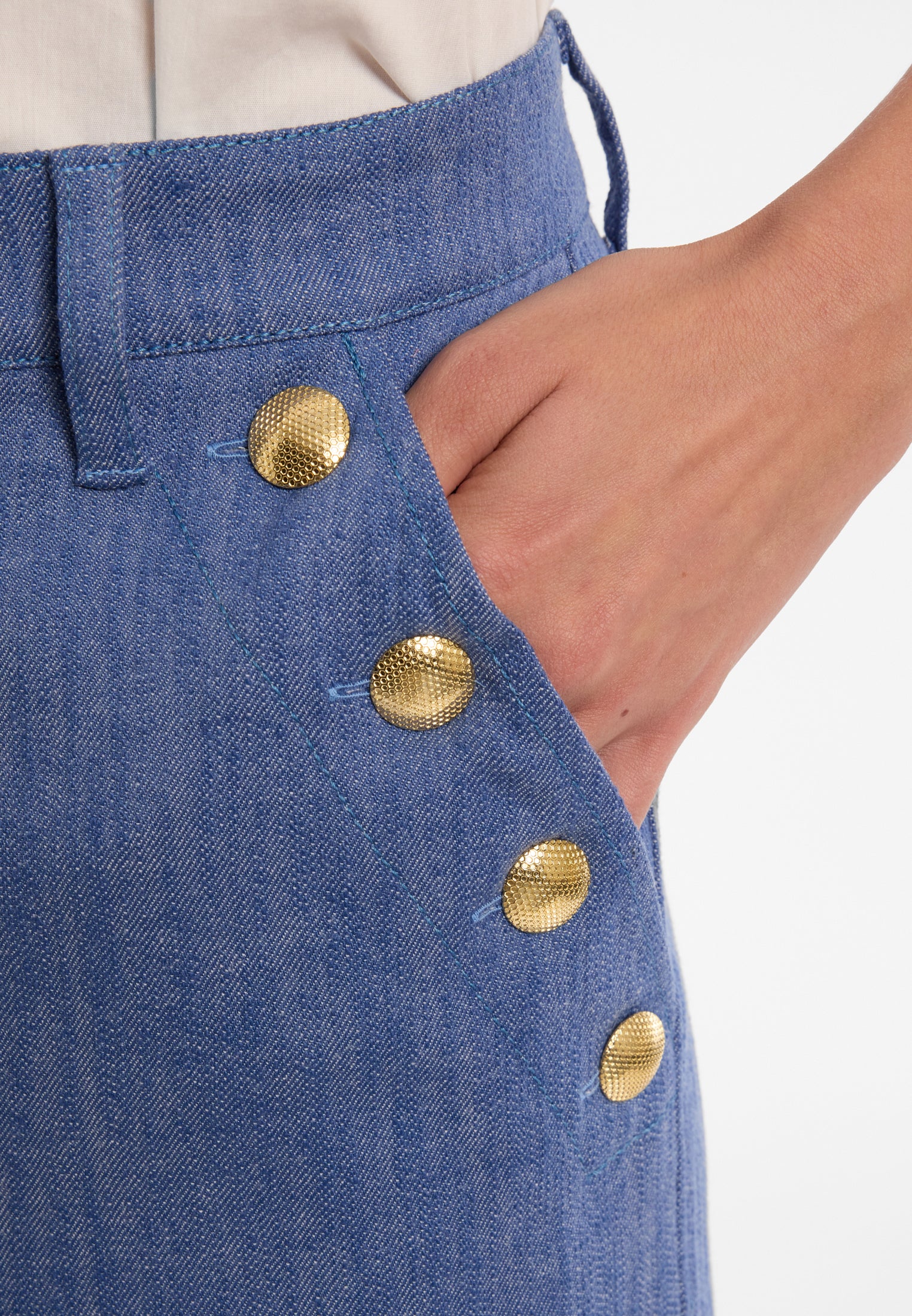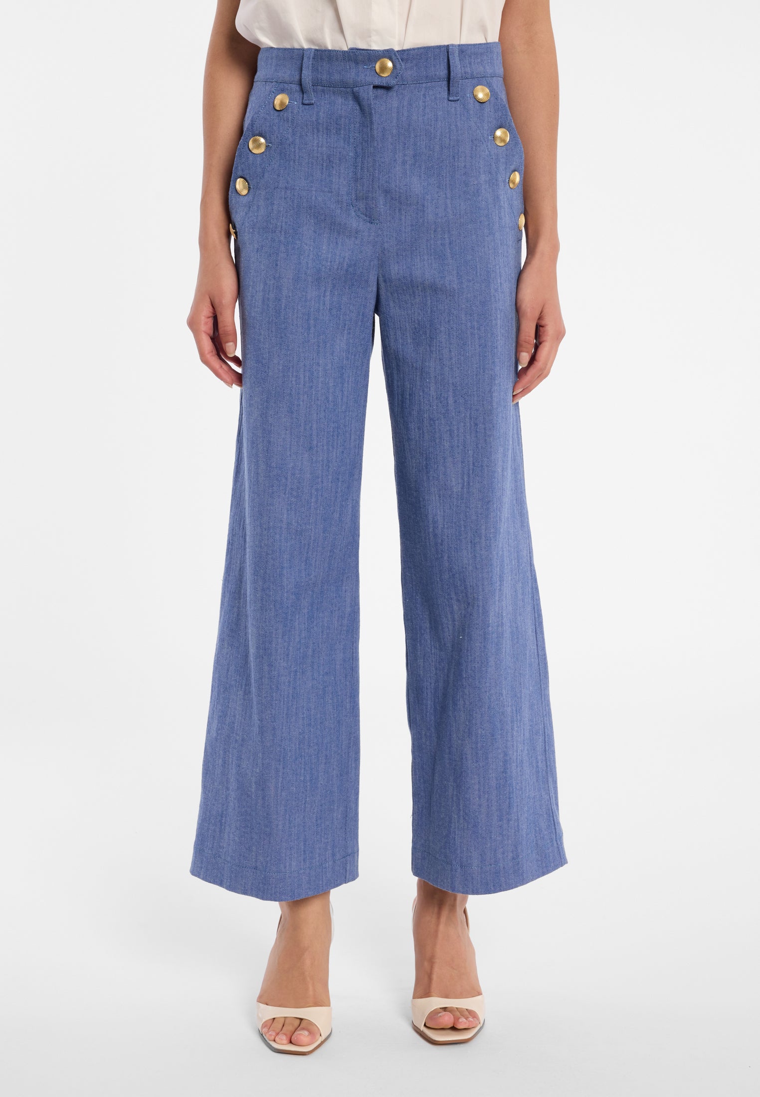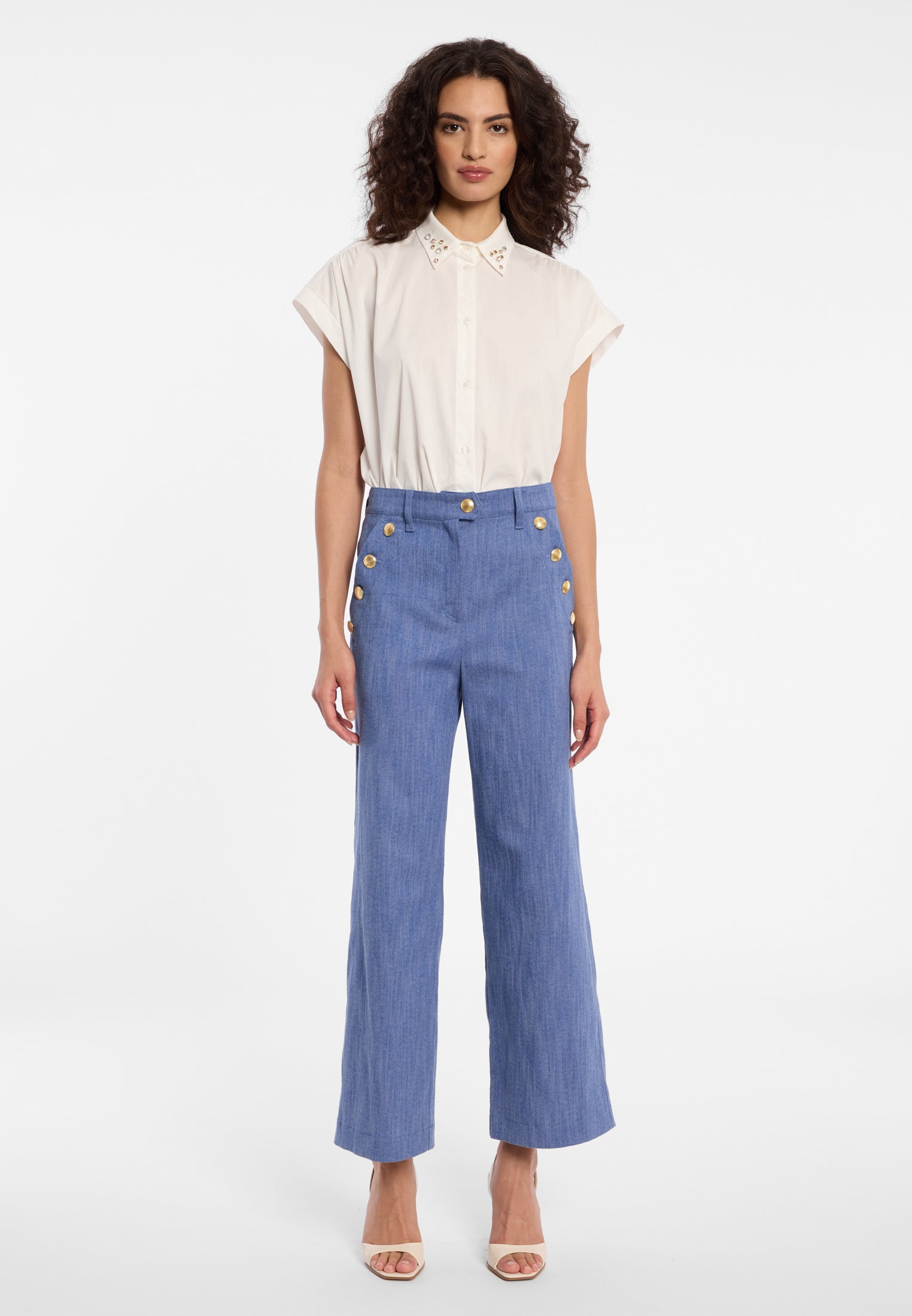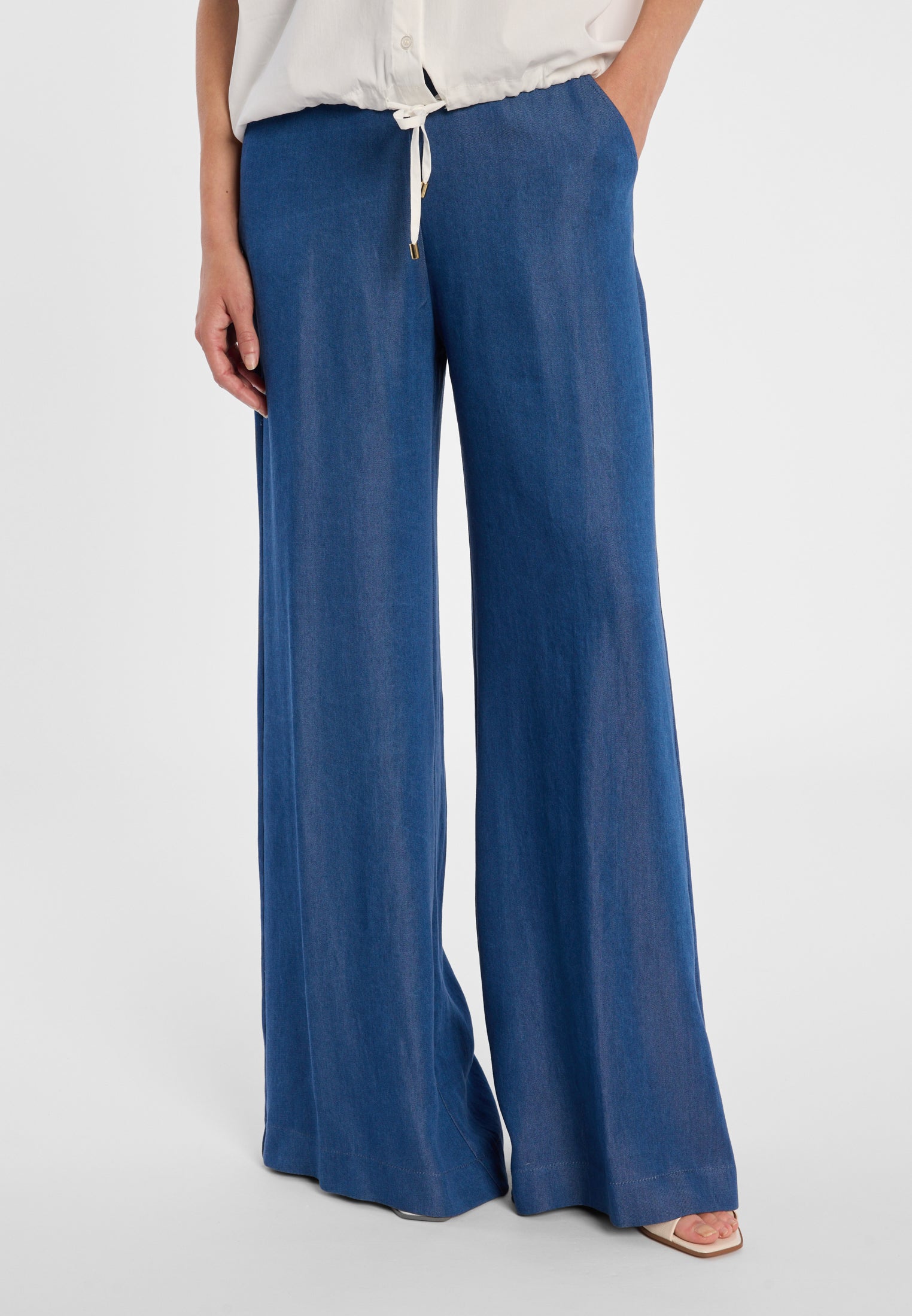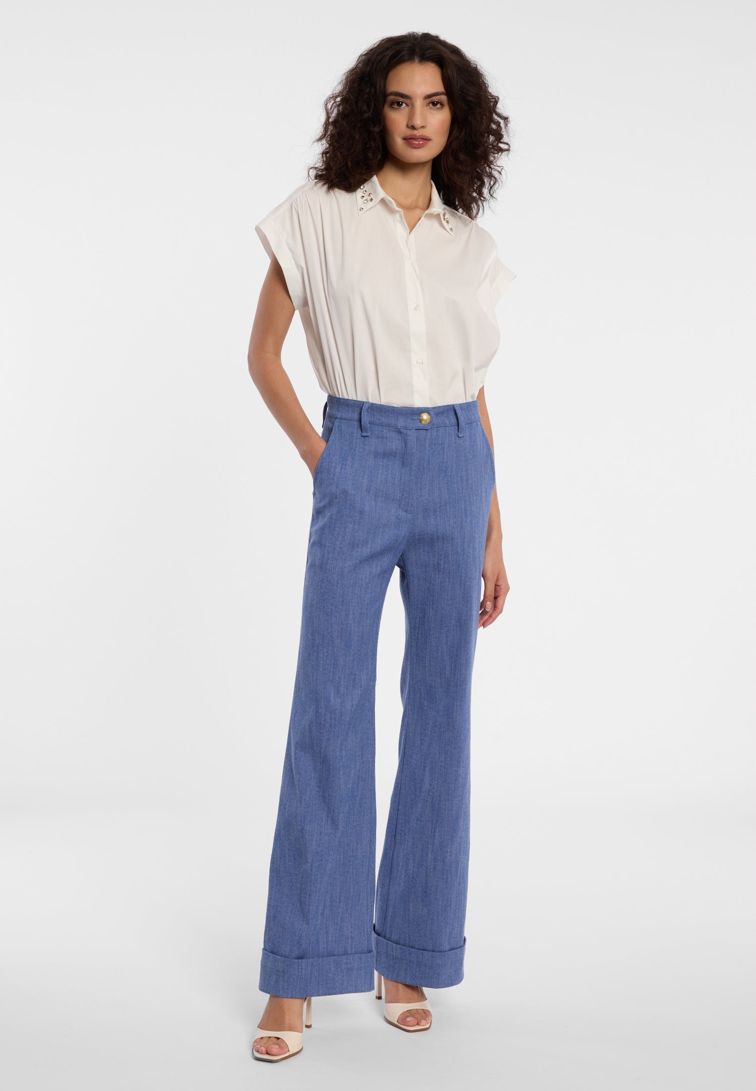Een vleugje hemel. Zachte ruches en luchtige volumes geven deze look pure lichtheid – alsof de lente je persoonlijk omarmt.