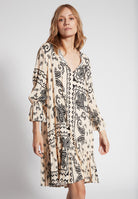 Markante Prints, präzise Schnitte und fließende Silhouetten vereinen Eleganz und Selbstbewusstsein. Unsere Inspiration? Kunst, Architektur, Reisen – und die Frauen, die uns tragen. So entstehen Kollektionen, die auffallen, ohne laut zu sein.