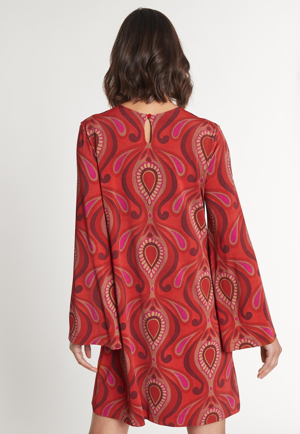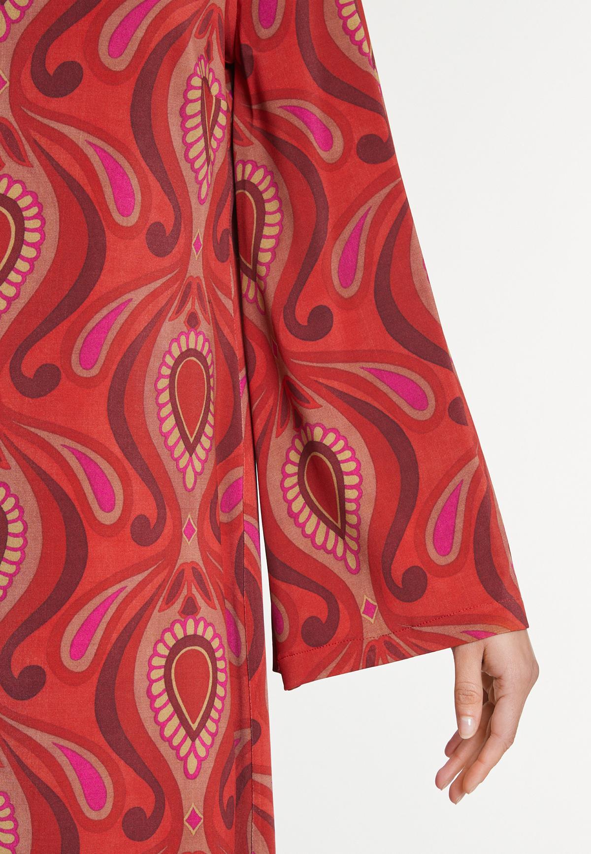 Ein unvergesslicher Auftritt ist in dem Ana Alcazar Tunikakleid mit farbintensivem grafischem 70ies Print garantiert! Der lockere, figurumspielende Schnitt mit den ausgestellten Ärmeln gibt Raum für den Print und für bewundernde Blicke. Mit roten Stiefeletten und Statement-Bag stilecht ausführen.